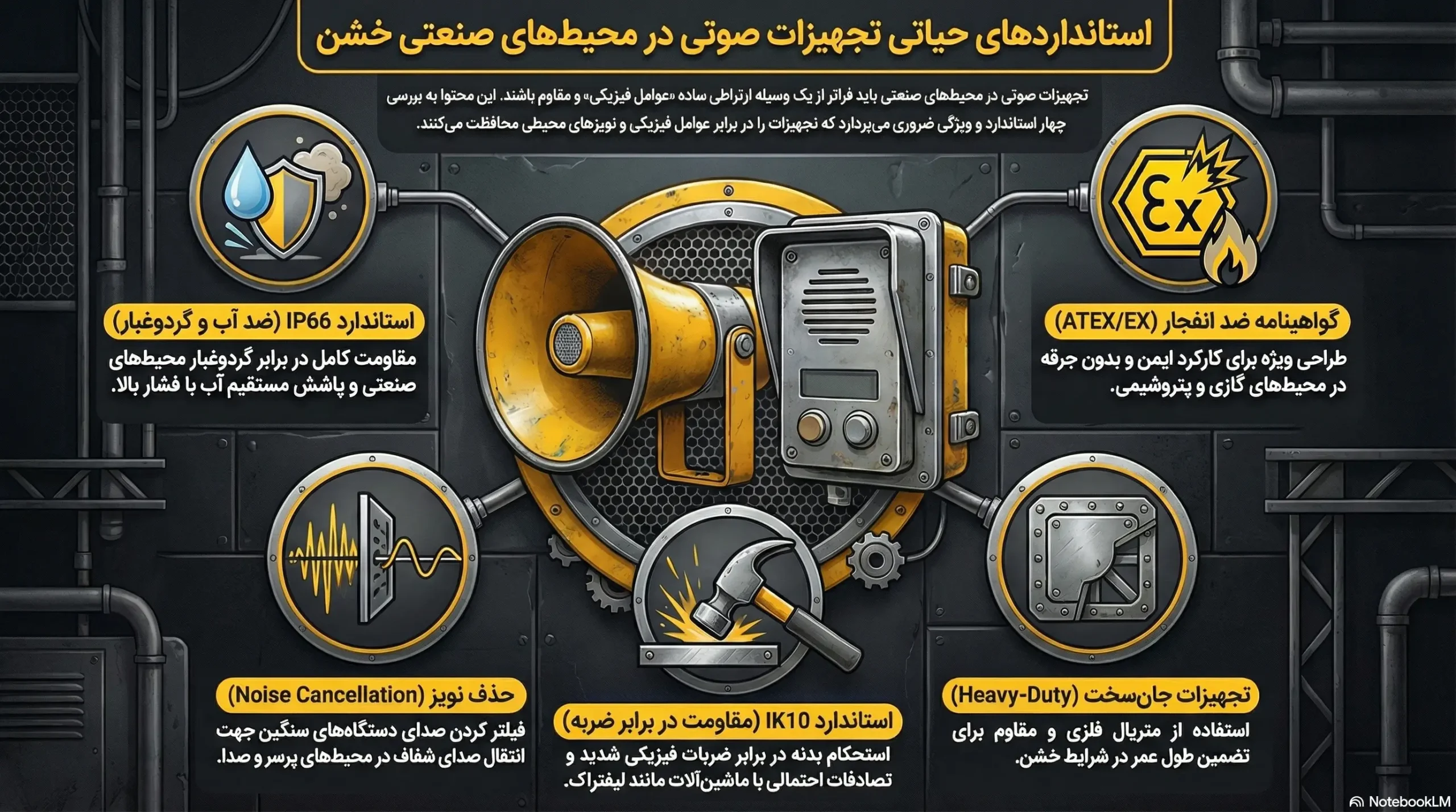 در محیط‌های کارخانه‌ای، برخلاف محیط‌های اداری، تجهیزات در معرض گردوغبار، رطوبت، مواد شیمیایی و ضربه هستند. هنگام خرید سیستم پیجینگ صنعتی، حتماً به استانداردهای زیر توجه کنید: