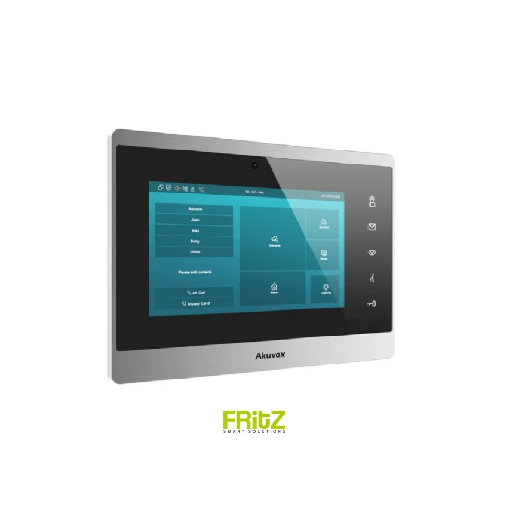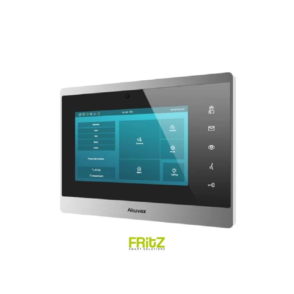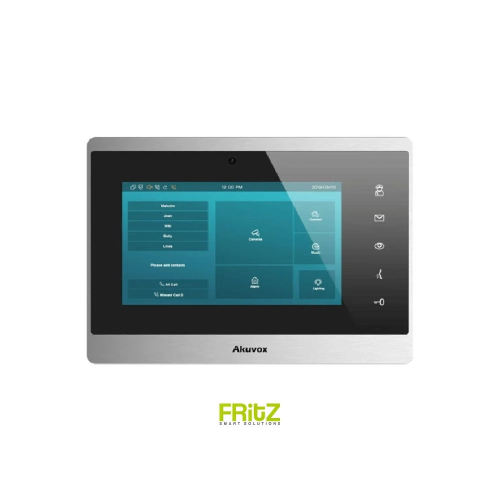 با مانیتور داخلی ۷ اینچی Akuvox IT82، تجربهٔ ارتباط با درون منزل شما به یک سطح جدید از آسانی و راحتی می‌رسد. این مانیتور با صفحهٔ لمسی ۵ دکمه به شما امکان می‌دهد تا به آسانی و با سرعت به تمامی امکانات دسترسی داشته باشید. این دکمه‌ها به شما امکان کنترل سریع بر روی ویژگی‌های مختلفی از جمله دسترسی به دوربین‌های مداربسته، باز کردن در، و راه‌اندازی ویژگی‌های دیگر را می‌دهد.